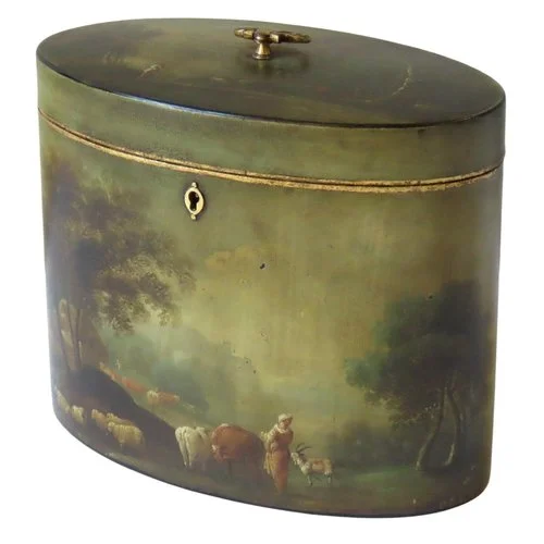 IN THE MANNER OF HENRY CLAY, A REGENCY PAINTED TEA CADDY