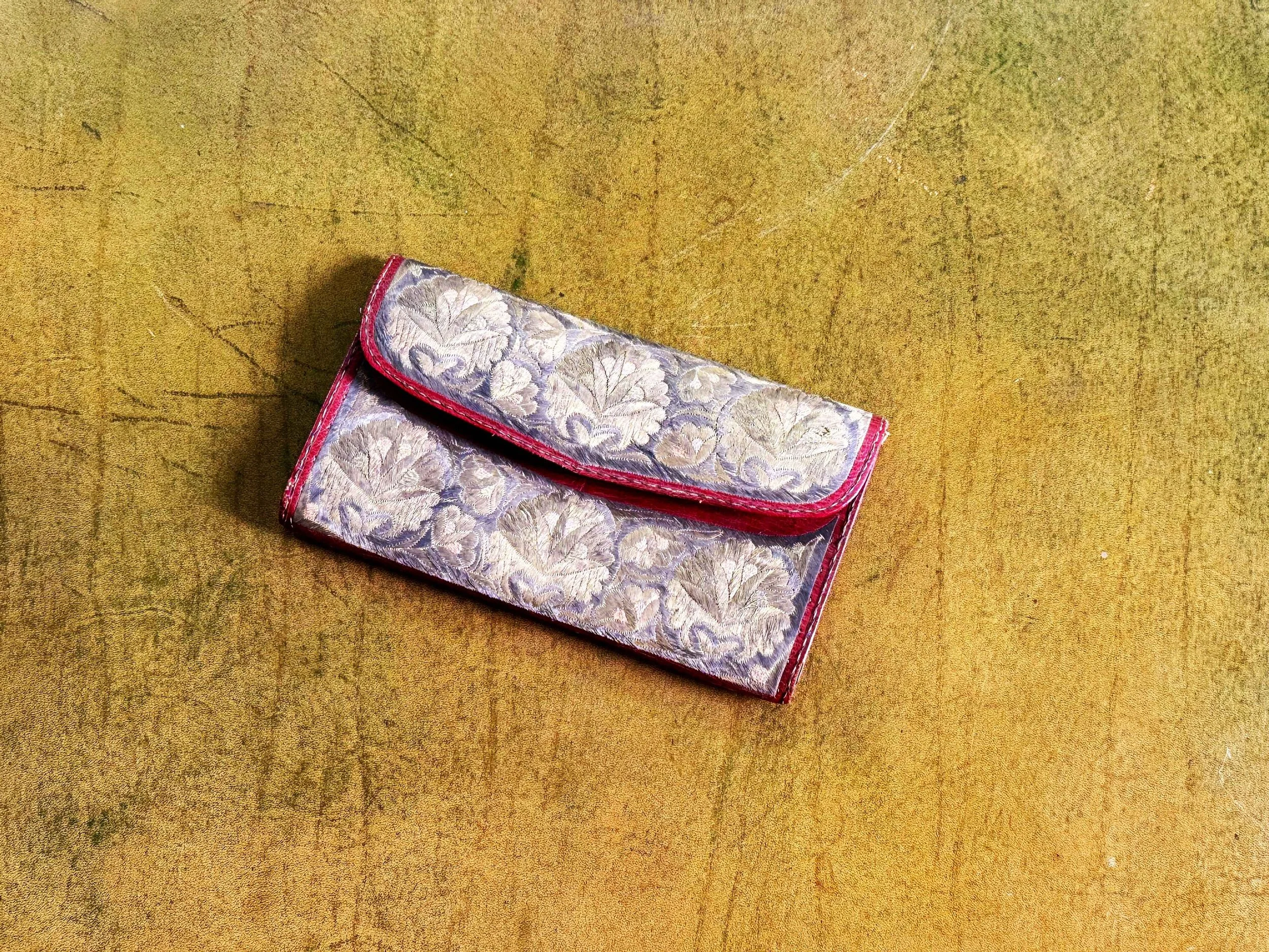 An Ottoman Leather And Wirework Purse the interior of the top flap embroidered 'Constantinople 1742'