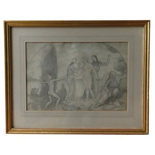 AUGUSTUS EDWIN JOHN (1878-1961) PENCIL DRAWING OF GROUP WITH GIRL BESIDE A BOAT