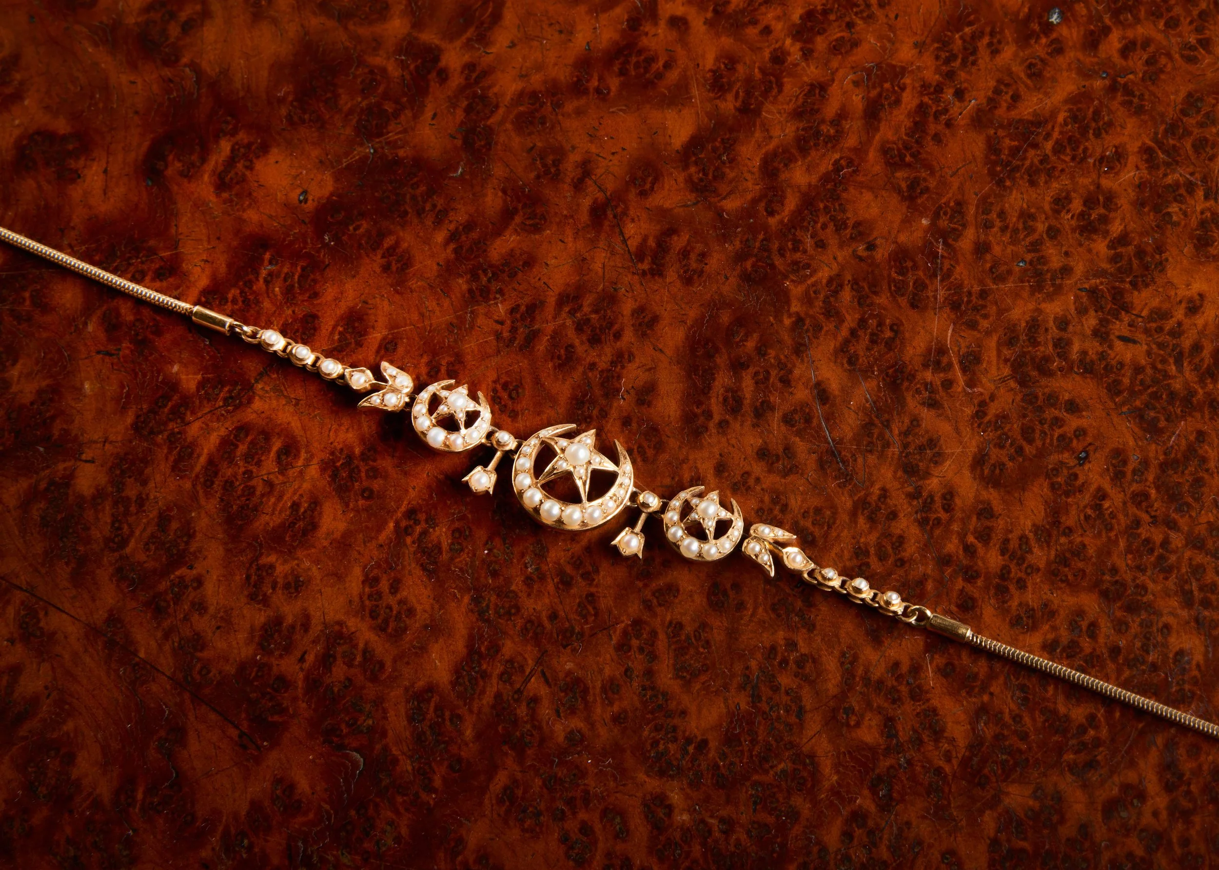 A LATE VICTORIAN GOLD AND PEARL NECKLACE, CIRCA 1880