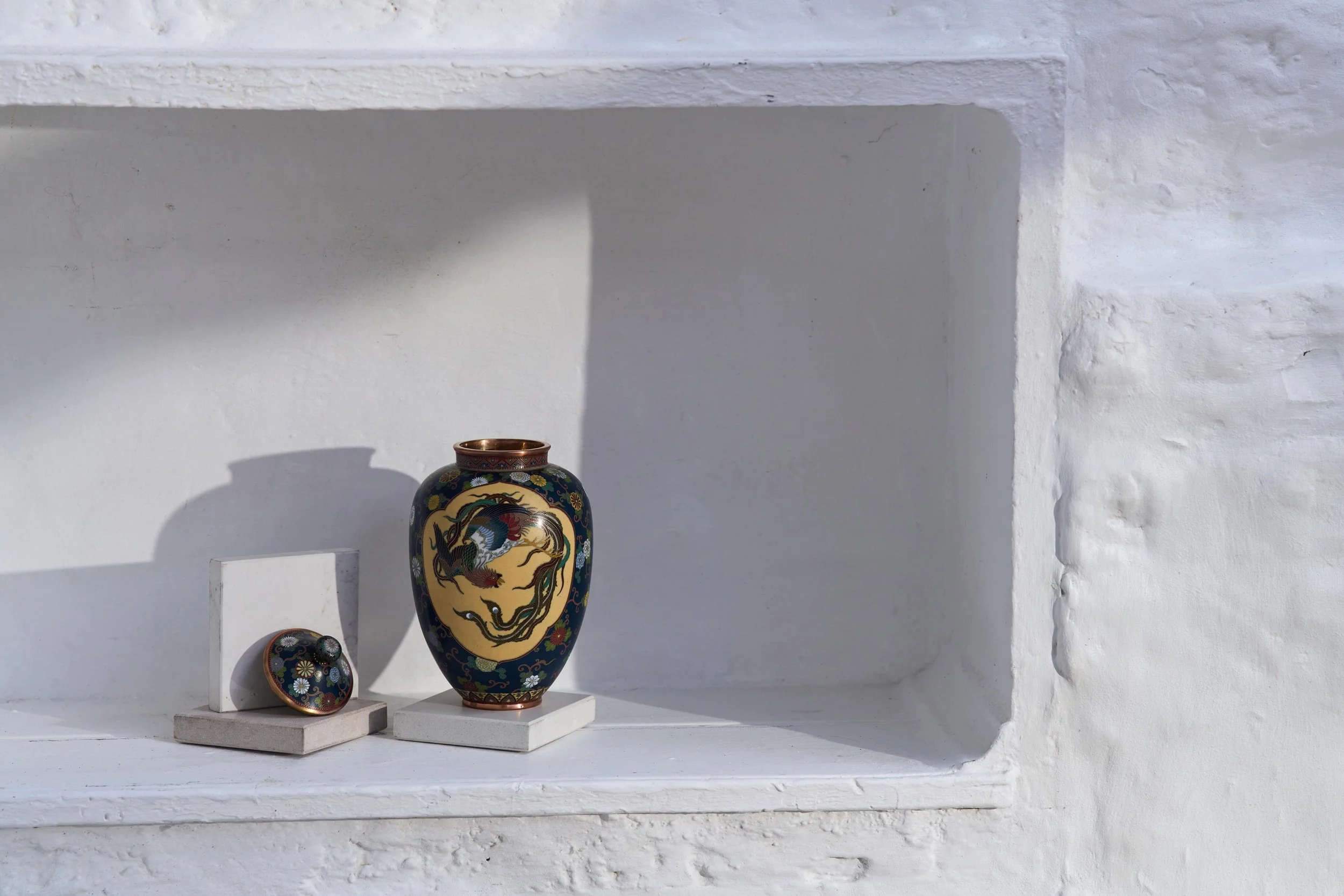 My interest in Japanese metalwork specifically, started by chance when perusing a local antique shop in a market town close to my home. As was the case in those days, the owner and I got into conversation and she happened to point out two small pieces she was particularly taken with, one being a small bronze vase with inlay, the other, a small cloisonné vase, both fairly insignificant at first glance.